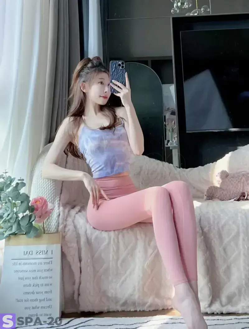 瑜伽服显得腿又细又长,瘦腰大奶,圆挺挺的,非常的棒