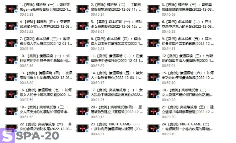 │ 24.【案例】NIGHTGAME(二):從認識到一小時内收尾的關鍵(2022-12-03 12:26:51).mp4